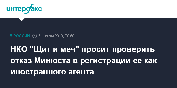 НКО "Щит и меч" просит проверить отказ Минюста в регистрации ее как иностранного агента