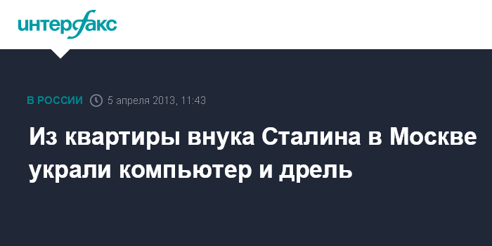 Из квартиры внука Сталина в Москве украли компьютер и дрель