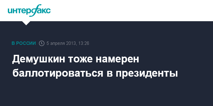 Москва. 5 апреля. INTERFAX.RU - Лидер националистического объединения "Русские" Дмитрий Демушкин вслед за оппозиционером Алексеем Навальным заявил о возможности своего участия в президентских выборах. "Я не исключаю своего выдвижения на пост президента России и готов принять участие в выборах в 2018 г.", - сообщил "Интерфаксу" в пятницу Демушкин.