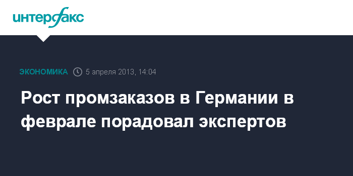 5 апреля. FINMARKET.RU - Объем промышленных заказов в Германии в феврале 2013 года вырос на 2,3% относительно предыдущего месяца, свидетельствуют данные министерства экономики ФРГ.