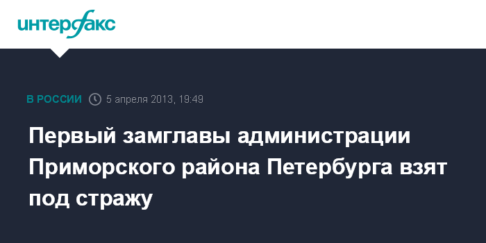 Первый замглавы администрации Приморского района Петербурга взят под стражу