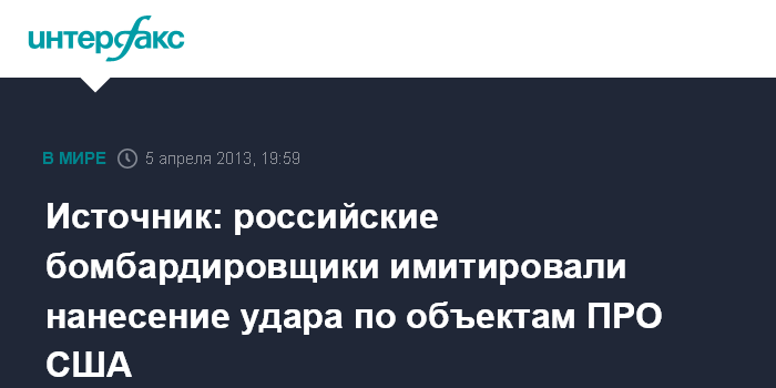 Вашингтон. 5 апреля. INTERFAX.RU - Российские стратегические бомбардировщики имитировали нанесение удара крылатыми ракетами по ряду объектов противоракетной обороны США у берегов Японии, сообщила в пятницу интернет-газета Washington Free Beacon, ссылаясь на американские военные источники.