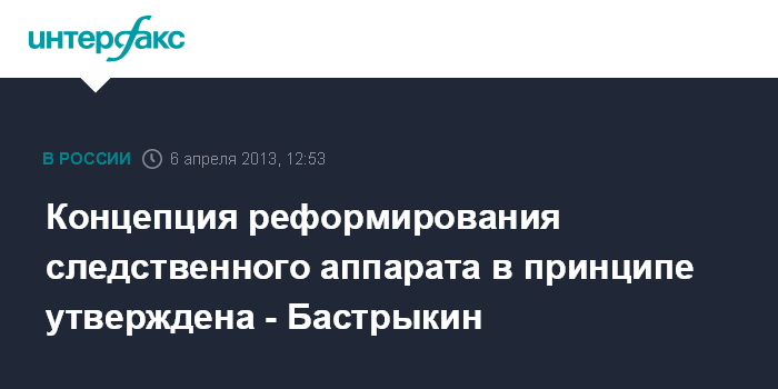 Москва. 6 апреля. INTERFAX.RU - Утверждена концепция реформы следственных органов России, заявил глава Следственного комитета РФ Александр Бастрыкин на всероссийском совещании руководящего состава органов предварительного следствия, проходящем в МВД России.