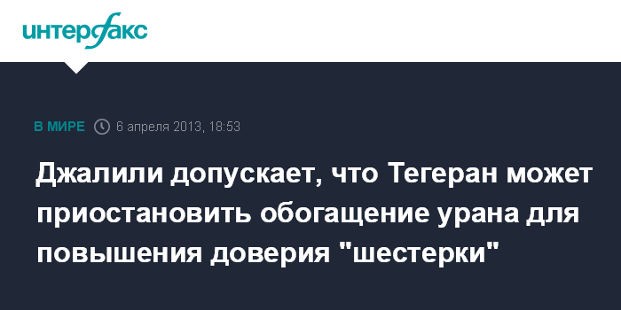 Джалили допускает, что Тегеран может приостановить обогащение урана для повышения доверия "шестерки"
