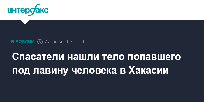 Москва. 7 апреля. ИНТЕРФАКС - Найдено тело туриста, которого искали после схода лавины в Хакасии, сообщает МЧС.