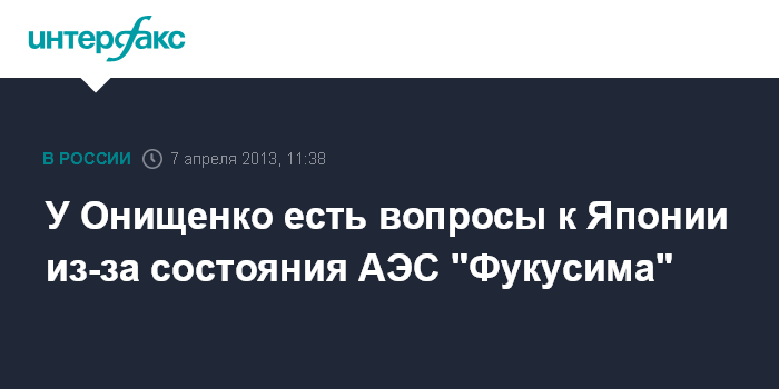 Москва. 7 апреля. INTERFAX.RU - Участившиеся аварии на АЭС "Фукусима" в Японии являются серьезным основанием для тревоги со стороны России, заявил "Интерфаксу" в воскресенье руководитель Роспотребнадзора, главный государственный санитарный врач РФ Геннадий Онищенко.
