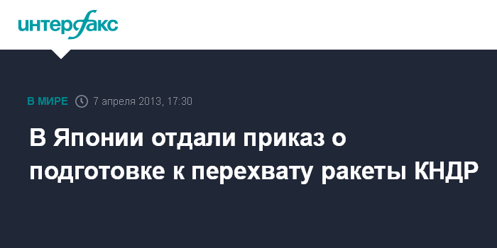 Япония. 7 апреля. INTERFAX.RU - Министр обороны Японии Ицунори Онодэра распорядился начать подготовку к перехвату любой ракеты КНДР, которая может упасть на японской территории, сообщают в воскресенье местные СМИ. Теперь, как ожидается, в Японское море выйдут эсминцы, оснащенные системой ПРО "Иджис" для наблюдения за возможным запуском со стороны Северной Кореи.