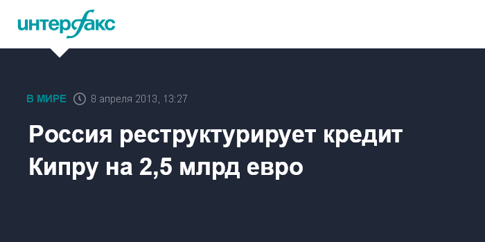 Ганновер. 8 апреля. INTERFAX.RU - Россия реструктурирует кредит на 2,5 млрд евро, предоставленный Кипру в 2011 году.