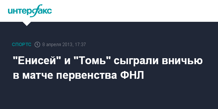 Москва. 8 апреля. INTERFAX.RU - В матче 27-го тура первенства Футбольной национальной лиги красноярский "Енисей" на своем поле сыграл вничью с томской "Томью". Встреча завершилась со счетом 1:1.