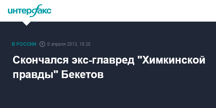Москва. 8 апреля. INTERFAX.RU - Бывший главный редактор газеты "Химкинская правда" Михаил Бекетов, ставший инвалидом после жестокого нападения, умер, сообщила адвокат Сталина Гуревич.
