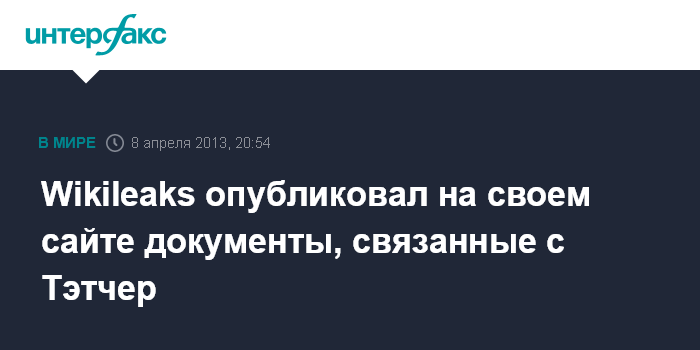 Лондон. 8 апреля. INTERFAX.RU - На сайте Wikileaks в понедельник появилась публикация секретных депеш американских дипломатов, в которых упоминается имя бывшего британского премьера Маргарет Тэтчер.