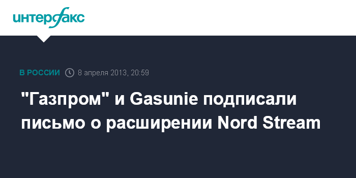 Амстердам. 8 апреля. INTERFAX.RU - Глава ОАО "Газпром" Алексей Миллер и председатель правления, главный управляющий директор Gasunie Пауль ван Гелдер в рамках визита президента РФ Владимира Путина в Нидерланды подписали письмо о намерениях по расширению "Северного потока".