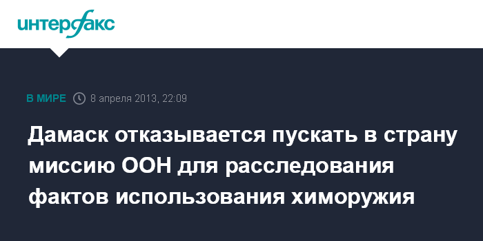 Бейрут. 8 апреля. INTERFAX.RU - Дамаск в понедельник отказался принять миссию экспертов ООН, которые должны были выяснить, использовалось ли в ходе конфликта в этой стране химическое оружие.