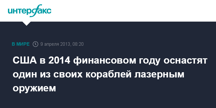 Вашингтон. 9 апреля. INTERFAX.RU - В 2014 финансовом году ВМС США планируют установить лазерное оружие на переоборудованном под плавбазу десантном корабле "Понс", сообщил представитель исследовательской лазерной программы ВМС Петер Моррисон в понедельник.
