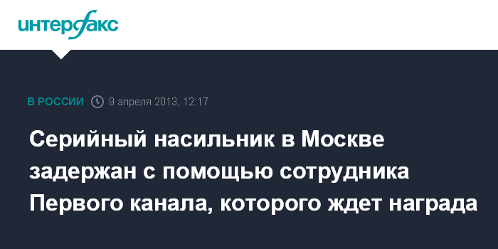 Серийный насильник в Москве задержан с помощью сотрудника Первого канала, которого ждет награда