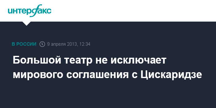 Москва. 9 апреля. INTERFAX.RU - Большой театр может пойти на мировое соглашение с премьером балетной труппы ГАБТ Николаем Цискаридзе в рамках иска танцора, оспаривающего наложенные на него взыскания.