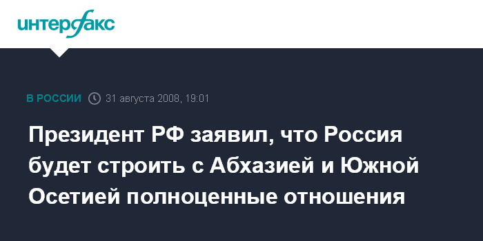 Президент РФ заявил, что Россия будет строить с Абхазией и Южной Осетией полноценные отношения