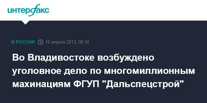 Во Владивостоке возбуждено уголовное дело по многомиллионным махинациям ФГУП "Дальспецстрой"