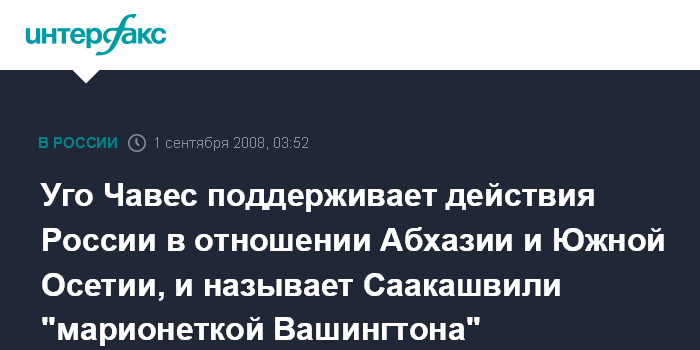 Уго Чавес поддерживает действия России в отношении Абхазии и Южной Осетии, и называет Саакашвили "марионеткой Вашингтона"