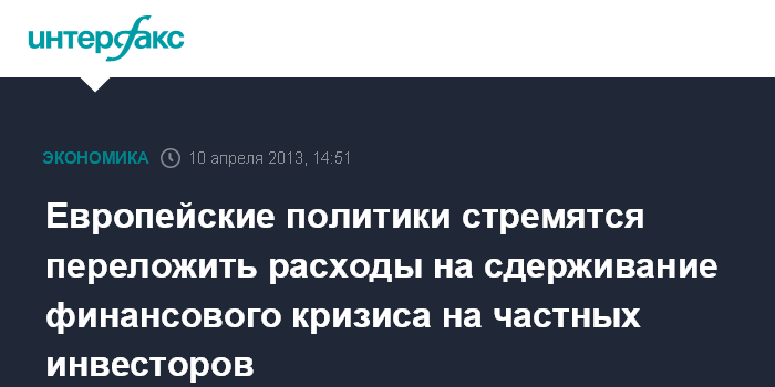 Обсуждаемые поправки позволяют предположить, что европейские политики все больше стремятся переложить расходы на сдерживание финансового кризиса на частных инвесторов после принятия недавнего плана спасения Кипра, стоившего серьезных потерь владельцам крупных депозитов в кипрских банках.