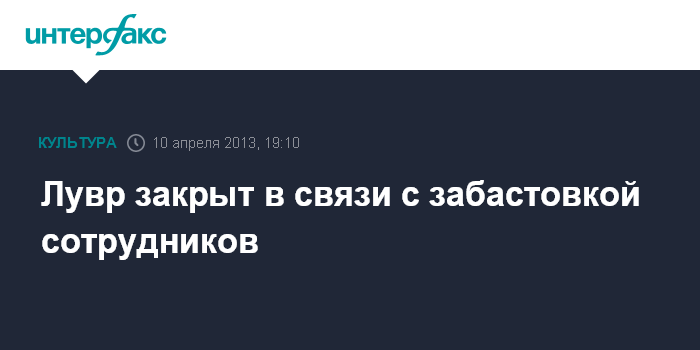 Париж. 10 апреля. INTERFAX.RU - Музей Лувр в среду закрылся для посетителей в связи с забастовкой его работников, возмущенных все более агрессивными действиями карманных воров, передает французский телеканал "France 24".