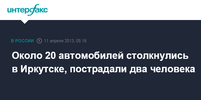 Иркутск. 11 апреля. ИНТЕРФАКС - Крупная автомобильная авария произошла утром в четверг в Иркутске, сообщил агентству "Интерфакс-Сибирь" начальник пресс-службы ГУ МВД России по Иркутской области Герман Струглин.