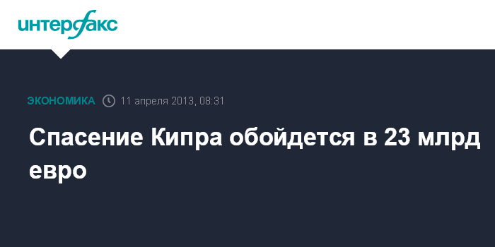 Москва. 11 апреля. INTERFAX.RU - Изменения, которые власти Кипра внесли в марте в согласованную с ЕС экономическую программу, чтобы добиться ее одобрения парламентом, повысили общую стоимость спасения страны до 23 млрд с первоначально ожидавшихся 17 млрд евро, пишет The Wall Street Journal. По данным газеты, новые оценки содержатся в проектах документов, подготовленных Еврокомиссией и Европейским ЦБ.