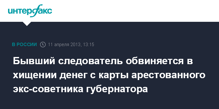 Бывший следователь обвиняется в хищении денег с карты арестованного экс-советника губернатора