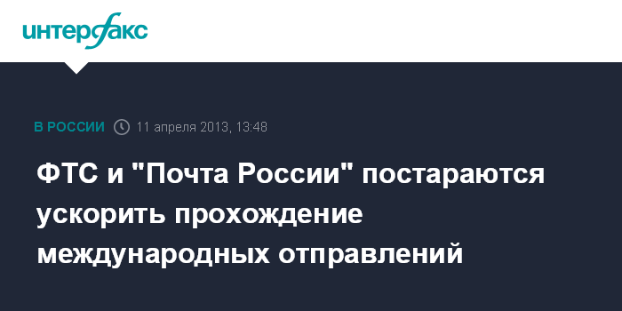 Москва. 11 апреля. INTERFAX.RU - Почта России и Федеральная таможенная служба договорились о мерах по ускорению прохождения почтовых отправлений из-за рубежа российским адресатам. Вопросы устранения задержек почты при входе в страну обсуждались на вчерашнем заседании совместной рабочей группы почтового оператора и таможенной службы под эгидой Россвязи.
