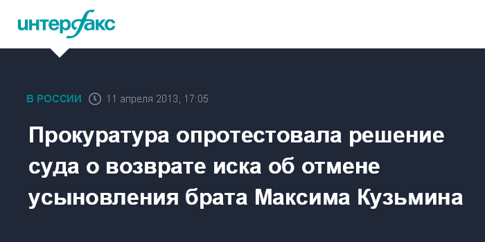 Прокуратура опротестовала решение суда о возврате иска об отмене усыновления брата Максима Кузьмина