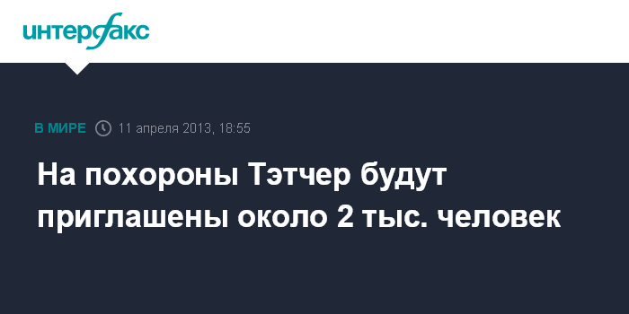 Лондон. 11 апреля. INTERFAX.RU - Около 2 тыс. человек получат приглашения приехать на похороны бывшего премьер-министра Великобритании Маргарет Тэтчер, сообщили в четверг на Даунинг-стрит, официальной резиденции главы британского правительства Дэвида Кэмерона.