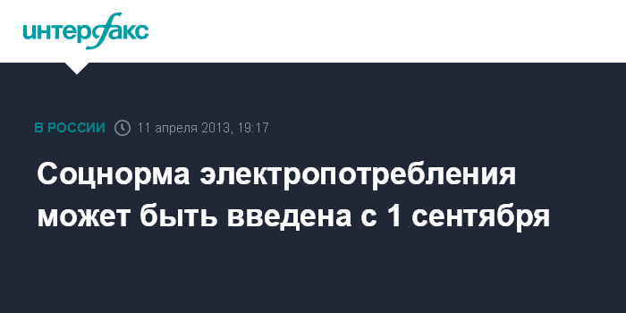 Москва. 11 апреля. INTERFAX.RU - Социальная норма потребления электроэнергии может быть введена с 1 сентября, сообщил журналистам замминистра энергетики Михаил Курбатов в четверг.