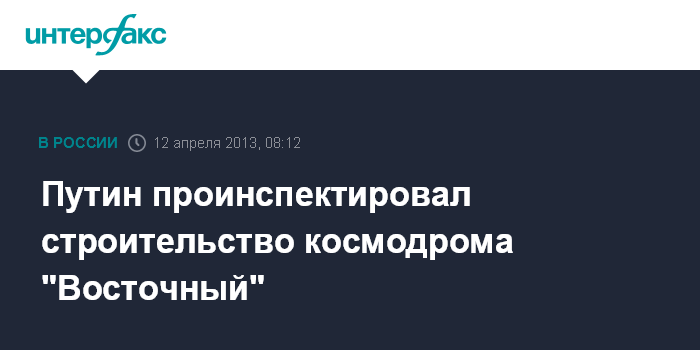 Углегорск (Амурская область). 12 апреля. INTERFAX.RU - Владимир Путин в ходе своей рабочей поездки в Дальневосточный федеральный округ ознакомился с ходом строительства площадок на космодроме "Восточный" и, в частности, стартового и технического комплексов ракет-носителей "Союз-2".
