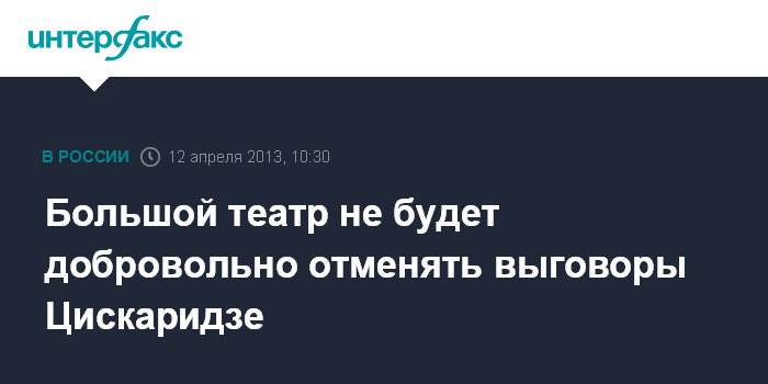 Москва. 12 апреля. INTERFAX.RU - Администрация Большого театра считает, что выговоры премьеру балетной труппы ГАБТ Николаю Цискаридзе были объявлены законно.
