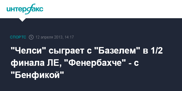 Москва. 12 апреля. INTERFAX.RU - Лондонский "Челси" сыграет с швейцарским "Базелем" в полуфинале Лиги Европы. Соперником турецкого "Фенербахче" стала португальская "Бенфика".