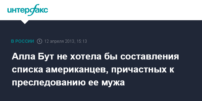 Алла Бут не хотела бы составления списка американцев, причастных к преследованию ее мужа