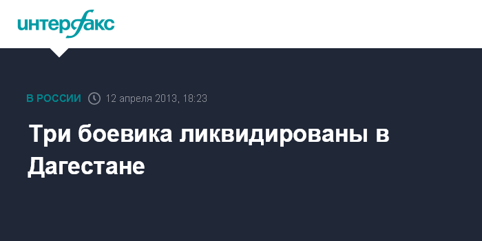 Москва.12 апреля. INTERFAX.RU - Три боевика из так называемой "гимринской" бандгруппы уничтожены в Дагестане в ходе спецоперации в пятницу, сообщили "Интерфаксу" в Национальном антитеррористическом комитета (НАК).