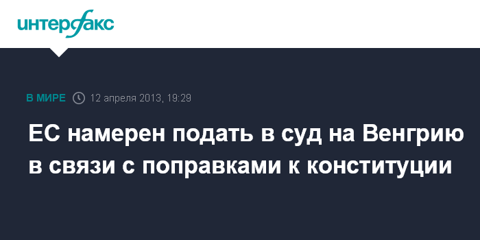 Брюссель. 12 марта. INTERFAX.RU - Европейская комиссия планирует начать судебный процесс по делу принятых в Венгрии поправок к конституции, ограничивающих полномочия венгерского конституционного суда.