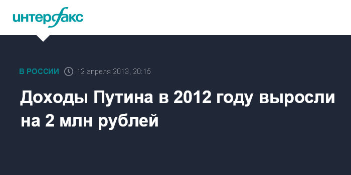Доходы Путина в 2012 году выросли на 2 млн рублей
