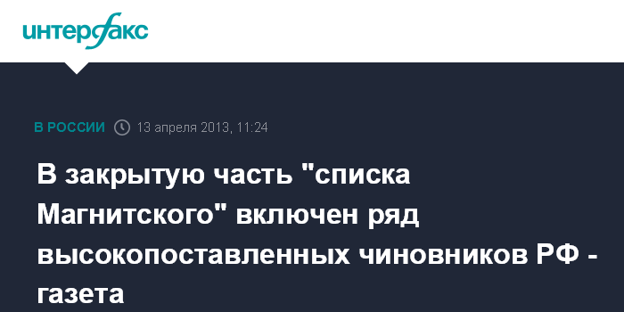 В закрытую часть "списка Магнитского" включен ряд высокопоставленных чиновников РФ - газета