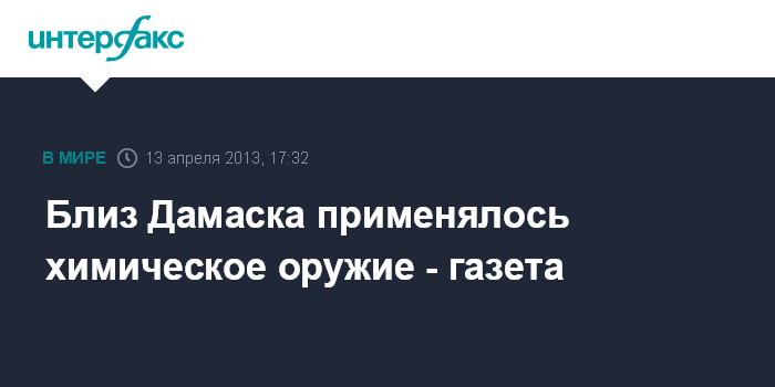 Лондон. 13 апреля. INTERFAX.RU - Британское министерство обороны обнаружило первые доказательства использования химического оружия в Сирии, сообщает в субботу лондонская "Таймс" со ссылкой на неназванные источники в ведомстве.