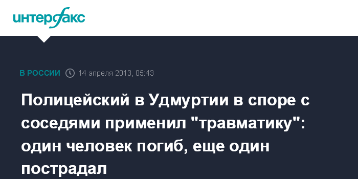 Полицейский в Удмуртии в споре с соседями применил "травматику": один человек погиб, еще один пострадал