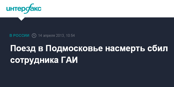 Москва. 14 апреля. INTERFAX.RU - Сотрудник ГИБДД погиб под колесами поезда в Раменском районе Московской области, сообщили "Интерфаксу" в пресс-службе ГУ МВД России по Московской области в воскресенье.
