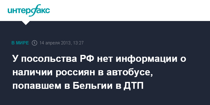 У посольства РФ нет информации о наличии россиян в автобусе, попавшем в Бельгии в ДТП
