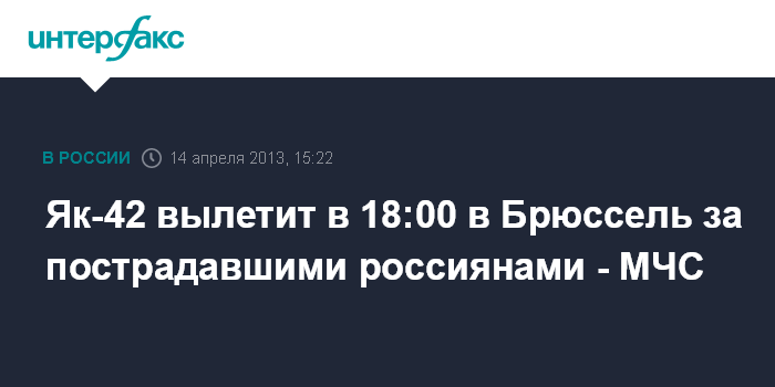 Як-42 вылетит в 18:00 в Брюссель за пострадавшими россиянами - МЧС