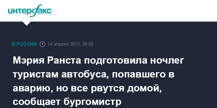 Мэрия Ранста подготовила ночлег туристам автобуса, попавшего в аварию, но все рвутся домой, сообщает бургомистр