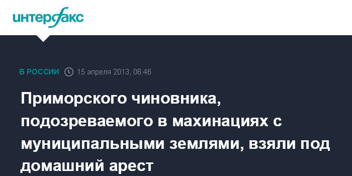Владивосток. 15 апреля. ИНТЕРФАКС - ДАЛЬНИЙ ВОСТОК - Глава Надеждинского района Приморского края Григорий Ведерников, подозреваемый в махинациях с муниципальными землями, по решению суда помещен под домашний арест.