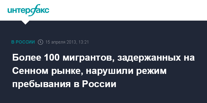 Санкт-Петербург. 15 апреля. INTERFAX.RU - УФМС по Санкт-Петербургу и Ленинградской области составило 109 протоколов за нарушение режима пребывания на территории России после последнего рейда на Сенном рынке, сообщает пресс-служба ведомства.