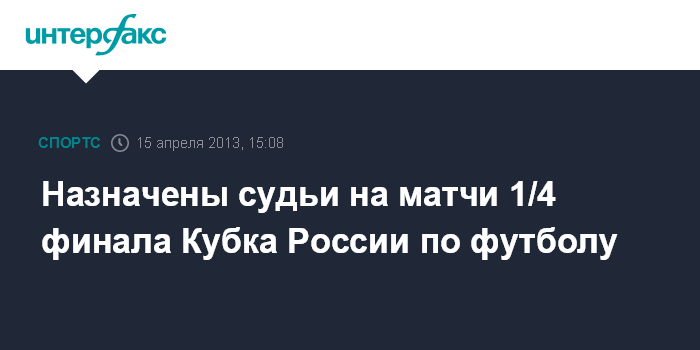Москва. 15 апреля. INTERFAX.RU - На матч 1/4 финала розыгрыша Кубка России-2012/13 между махачкалинским "Анжи" и московским "Динамо" назначена бригада арбитров во главе с Александром Егоровым (Саранск).