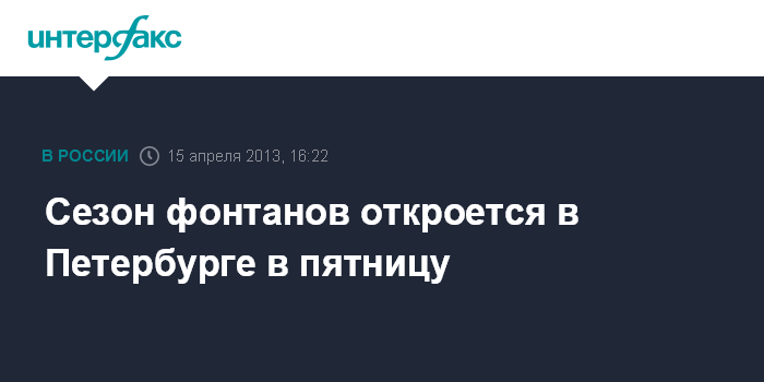Санкт-Петербург. 15 апреля. INTERFAX.RU - В Петербурге в пятницу, 19 апреля, откроется сезон фонтанов, сообщает пресс-служба "Водоканала".